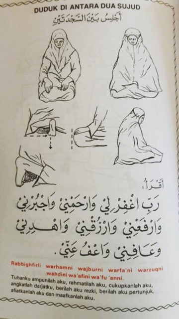 Bacaan duduk antara dua sujud perempuan. Saat duduk iftirasy adalah momentum terlama kita berdoa kepada allah swt setelah kita sujud sambil menyucikan asma allah dengan membaca misalnya subhana robbial a la mahasuci tuhanku allah yang mahatinggi kita memohon banyak hal kepada nya lalu sujud kembali untuk memuliakan nya dan merendahkan diri kita. Begitu juga dengan duduk diantaranya sujud juga termasuk dalam rukun shalat. Bacaan sujud dan bacaan duduk diantara dua sujud tidak boleh kita tinggalkan ketika shalat. Apabila kalian berada dalam posisi duduk di antara dua sujud maka kalian dapat membaca dua macam bacaan yang dibaca saat berada di antara dua sujud tersebut.