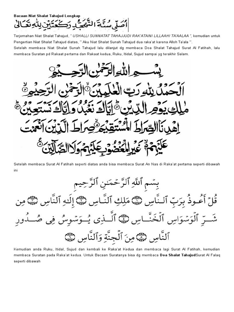 Oleh karena itu penting untuk melantunkan macam macam bacaan sujud dalam sholat. Dianjurkan saat sholat malam ditambah dengan 1 sholat witir sebagai penutup agar sholat lebih sempurna. Secara bahasa tahajjud terdiri dari dua kata yaitu ta dan hajada yang jika di artikan yaitu tidak tidur. Setelah salam anda disunahkan membaca wirid tasbih tahmid takbir sholawat istigfar dan doa sholat tahajud.