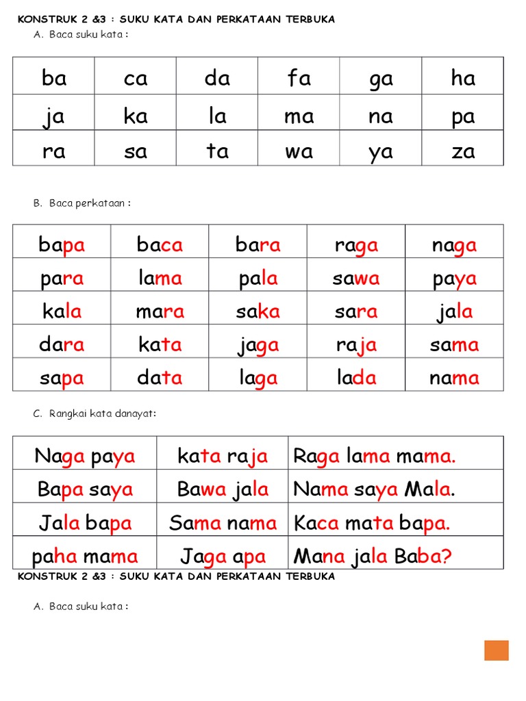 Suku kata terbuka tahun 1 kvkv zakaria ismail. Bahasa malaysia tahun 1 loh choon fah d 20102044157 el a 25. Kata kerja 2 kata hubung. Latihan latih tubi membaca.