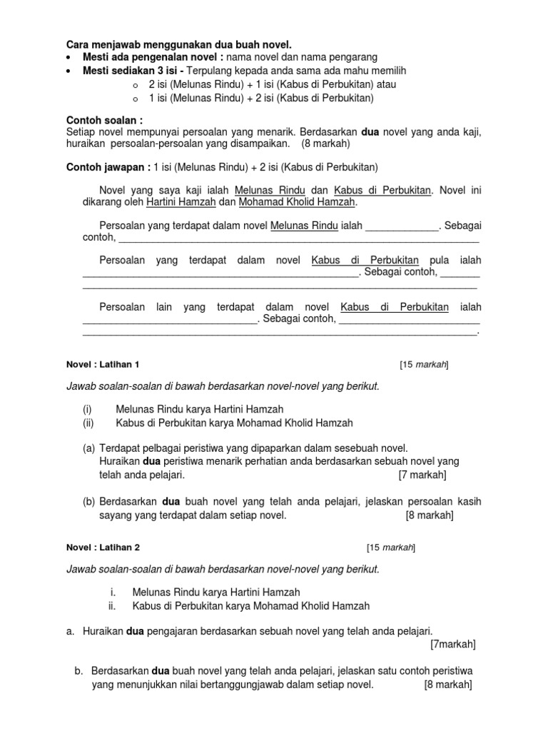 Dalam duanovel pengajaran satu persoalan dalam dua novel 2007 dua nilai setia kawan perbandingan tema dua peristiwa tentang persoalan maruah cara watak utama menyelesaikan konflik yang dihadapi dalam dua novel analisis soalan novel spm 2001. Contoh soalan spm berdasarkan kbat. Oleh sebab itu teks soalan bahagian pemahaman antologi soalan 2 b 2 c dan 2 d dan novel soalan 4 a dan 4 b telah berubah bermula soalan spm 2017. Teknik menjawab soalan novel spm soalan.
