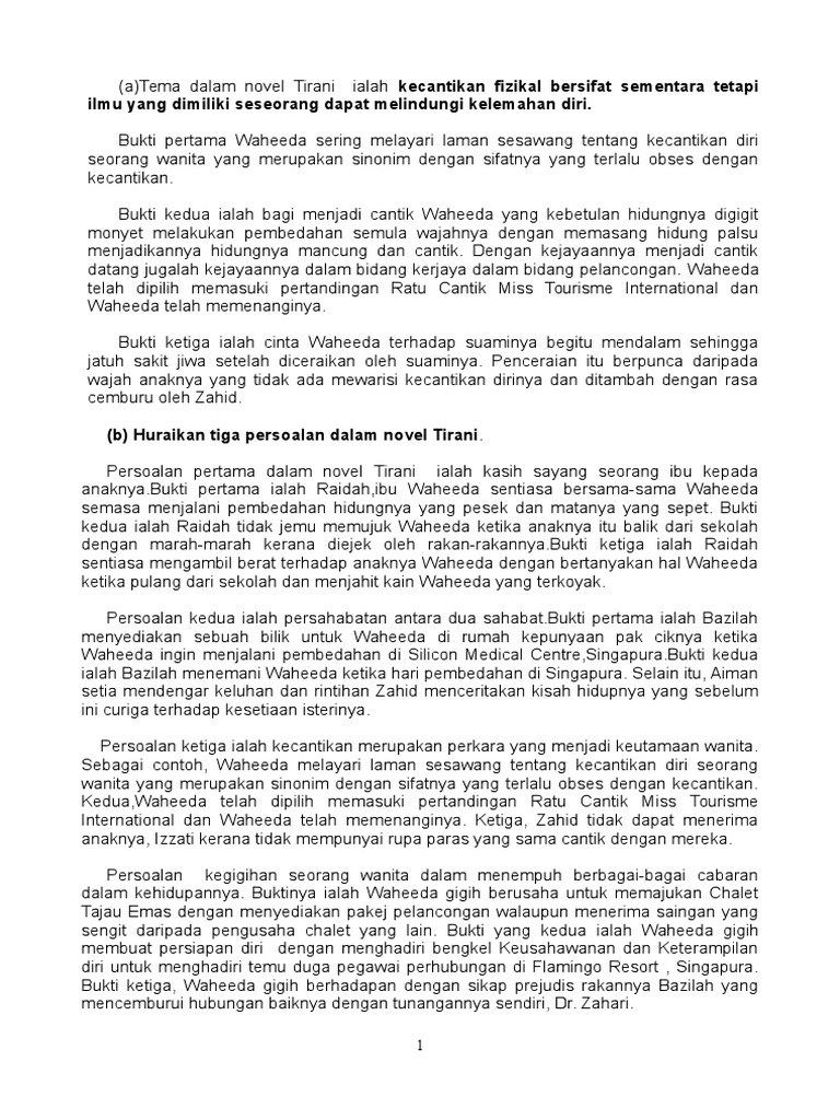 Jawapan l novel tirani. Komponen sastera dan novel bm bahasa melayu. Nyatakan tiga peristiwa menarik dalam novel tersebut. Sinopsis tema persoalan watak dan perwatakan nilai murni pengajaran plot teknik plot latar masa latar tempat latar masyarakat cabaran konflik kepincangan masyarakat soalan peperiksaan skema jawapan contoh soalan jawapan.