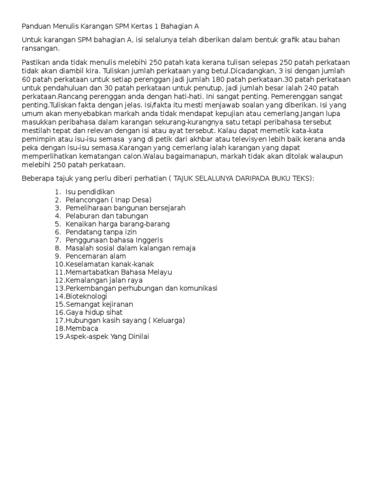 Cara Menulis Karangan Spm Bahagian A