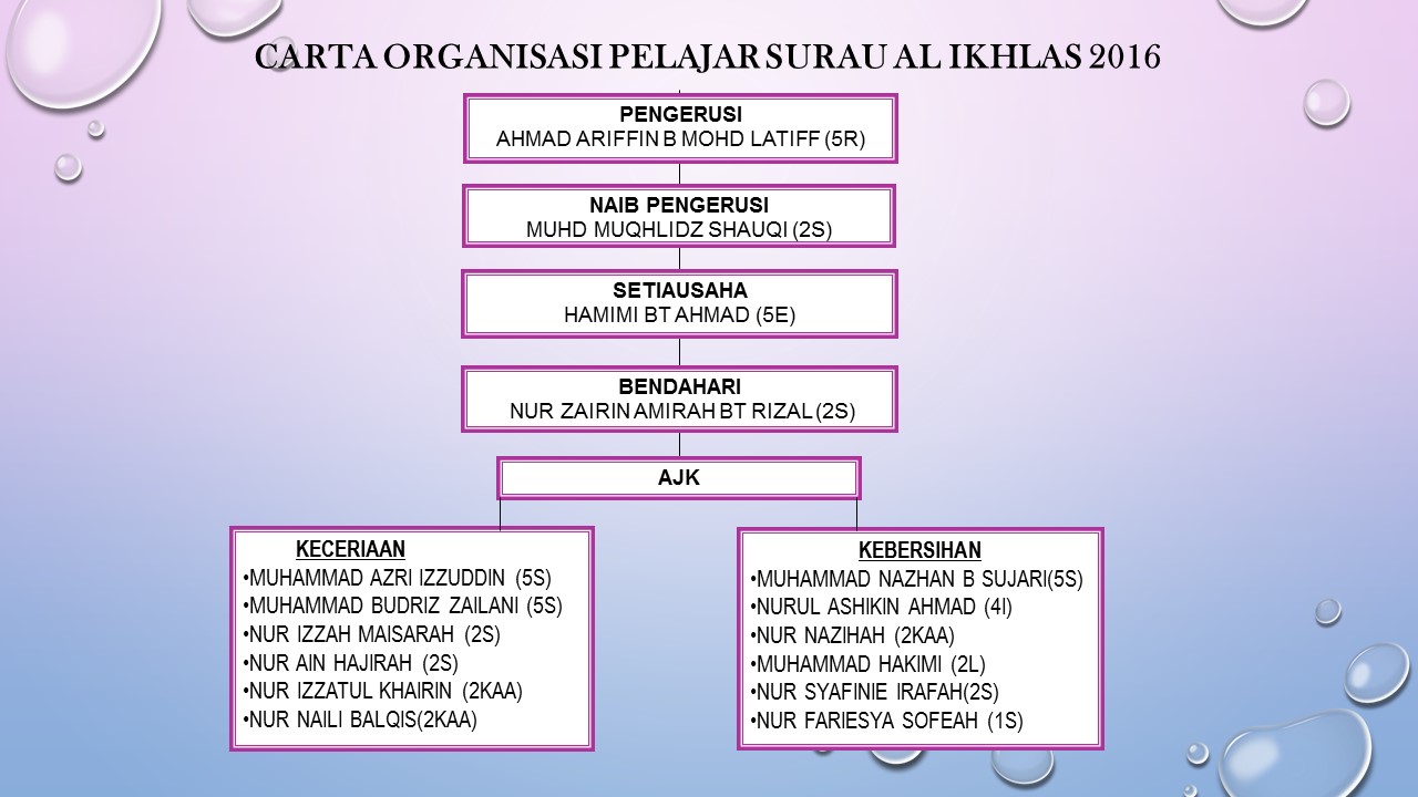 Carta organisasi surau sekolah menengah. Asma bt ali naib pengerusi. Surau ini hendaklah digunakan sebagai tempat mengerjakan ibadat solat melaksanakan amali pendidikan islam menyambut hari hari kebesaran islam aktiviti2 pendidikan serta kemasyarakatan. Jika anda mencari contoh carta organisasi surau sekolah maka anda berada di tempat yang tepat blog contohoha memiliki banyak koleksi gambar seperti contoh carta organisasi surau sekolah gambar ini tersedia dalam format jpg png gif. Peraturan surau peraturan am pengurusan surau ini adalah dikelolakan oleh sebuah jawatankuasa yang dilantik oleh pihak sekolah dengan bidang tugas yang ditetapkan.