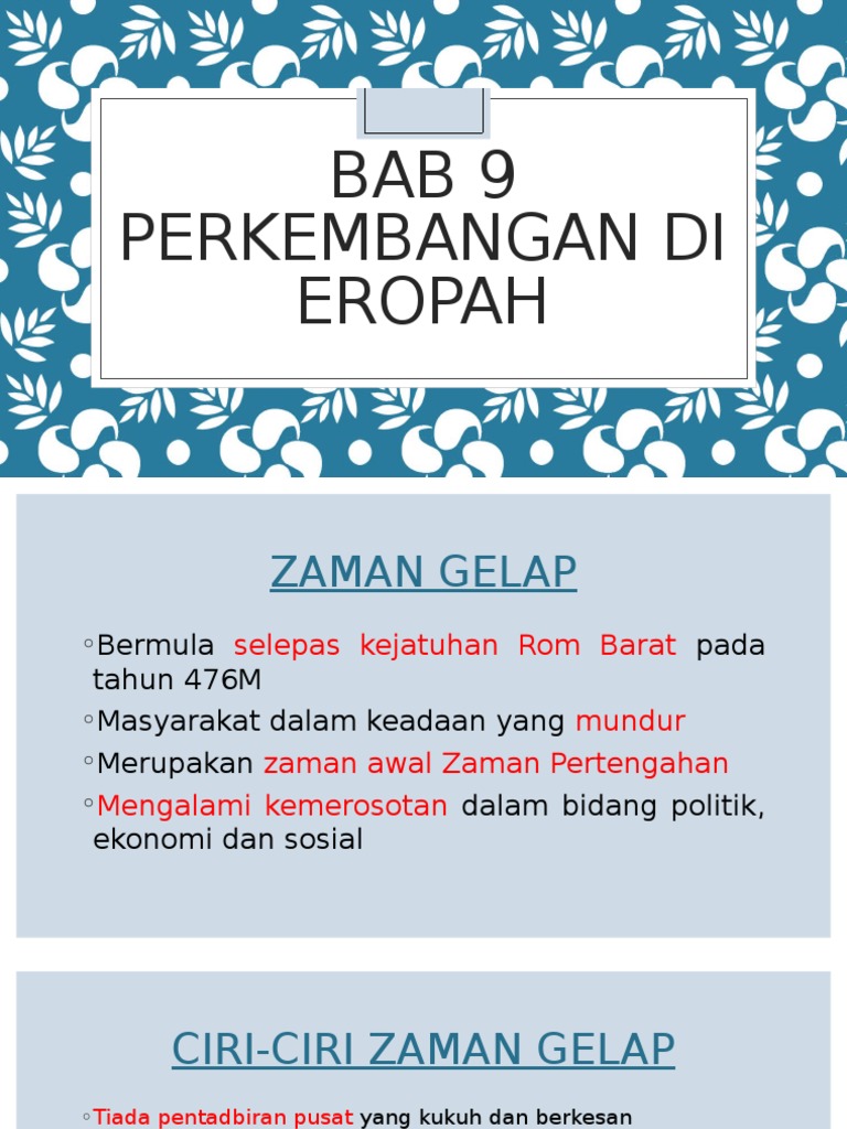 Ciri ciri zaman gelap politik ekonomi dan sosial persamaan zaman gelap dengan masyarakat feudal melayu cara menghidari berlakunya kemunduran negara masyarakat zaman gelap di eropah. Membawa kepada kemunculan bandar bandar seperti venice milan dan florence. Tutorial 2 sjhk 3123 ciri ciri zaman gelap di eropah 2. Tiada pentadbiran pusat yang berkesan.