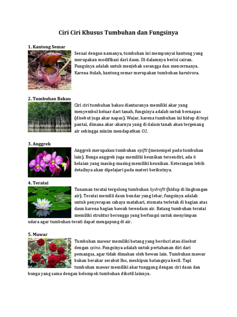 Memiliki daun yang sempit banyak yang berbentuk duri sehingga dapat mengurangi penguapan air. Spesies tertentu dapat tumbuhan tumbuh tinggi dan besar seperti pohon kelapa. Sebenarnya di materi sd kita tidak harus mengetahui 20 tumbuhan dengan ciri ciri khususnya di sekolah dasar biasanya kurang lebih 4 6 tumbuhan yang perlu untuk diketahui diantaranya adalah ciri khusus pada tumbuhan kaktus bungan bangkai kantung semar dan teratai. Ciri khusus tumbuhan ini adalah ujung batang yang selalu menggulung.