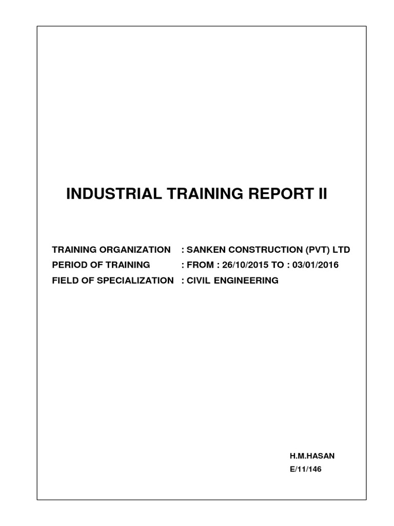 Industrial training final report. Singh department of civil engineering institute of engineering and technology sitapur road lucknow 226021. A report on summer training starting date of training. In sum the activities that i had learned during industrial training really are useful for me in future to face challenges in a working environment.