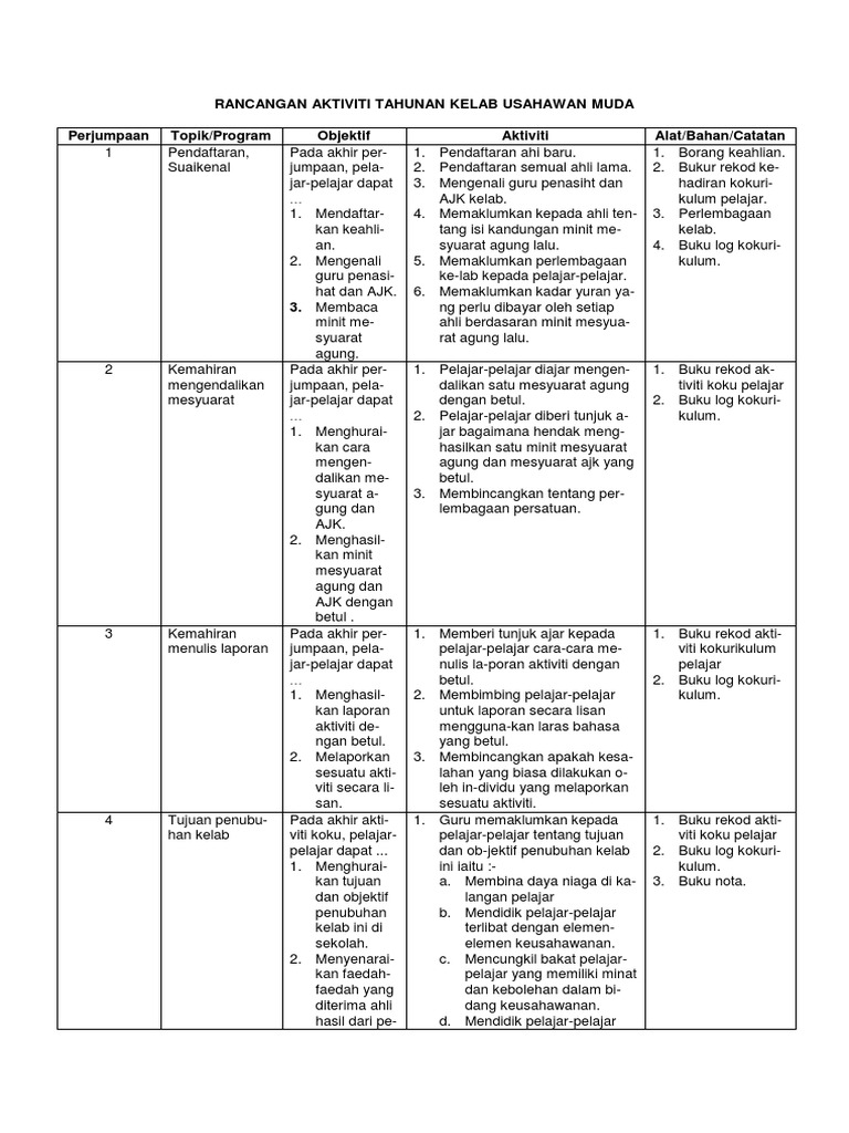 Contoh rancangan tahunan kadet bomba by neznm08. Segala aktiviti kelab dan persatuan tertakluk di bawah akta pertubuhan 1966. Rancangan tahunan kelab permainan by neznm08. Kelab dan persatuan tidak bermotifkan keuntungan.
