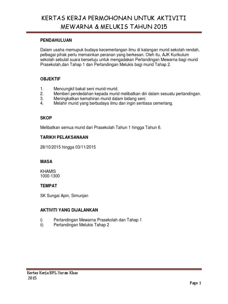 Yks yuran khas sekolah kedua dua punca kewangan ini perlu dihabiskan dalam tahun semasa. Surat rasmi berhenti kerja surat rasmi. Contoh kertas kerja program sekolah kertas kerja program pemantapan disiplin kertas cadangan seminar motivasi pmr spm kertas cadangan program kecemerlangan pmr spm ker. Himpunan contoh kertas kerja kertas kerja kempen berbudi bahasa.