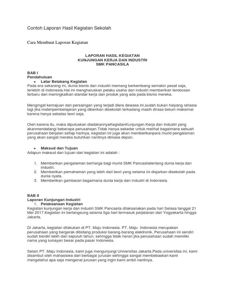 Laporan kegiatan sekolah adalah laporan yang isinya seputar kegiatan apa saja yang dilakukan oleh sekolah. Tahun ajaran 2017 2018. Tahun ajaran 2016 2017. Dalam menulis laporan kegiatan sekolah anda harus memahami seperti apa format penulisan dan bagian bagian yang ada di dalam laporan tersebut.