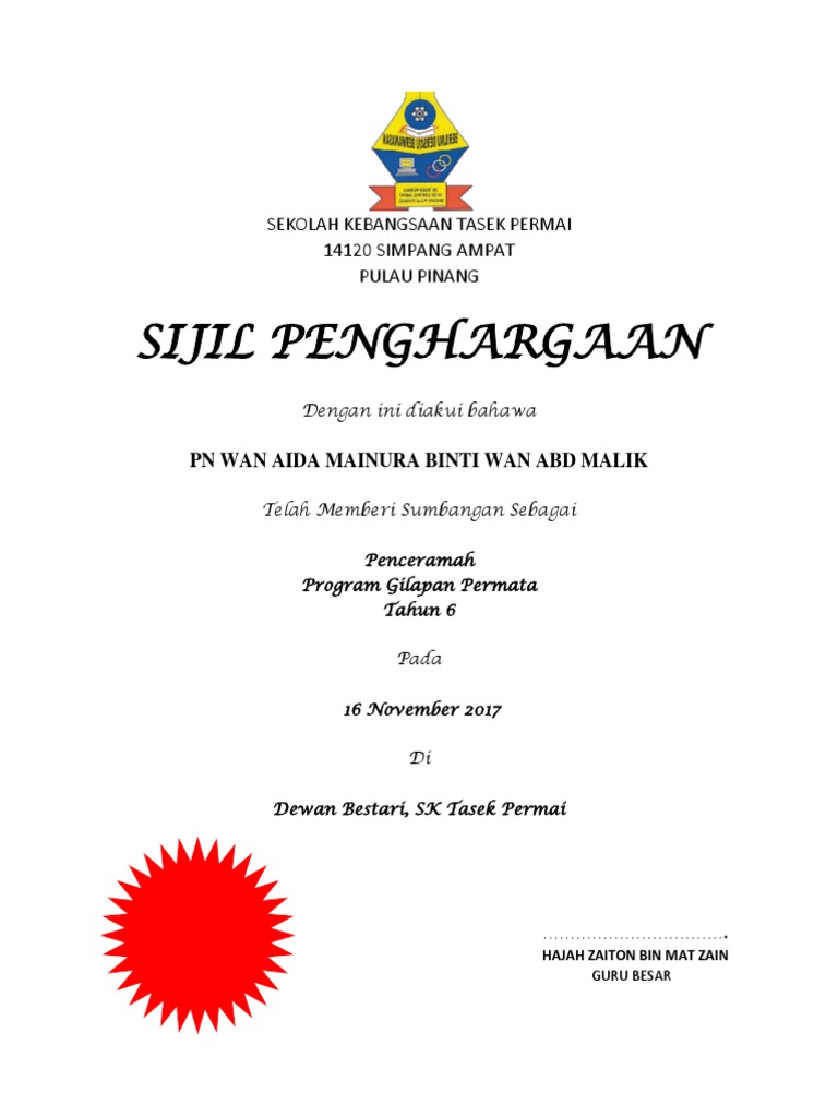 Contoh sijil penghargaan ajak lab. Surat lantikan ajk hem. Setingi tinggi penghargaan juga kepada prof. Oct 22 2015. Bahagian pengurusan halal jabatan kemajuan islam malaysia aras 6 7 blok d kompleks islam putrajaya kip no.