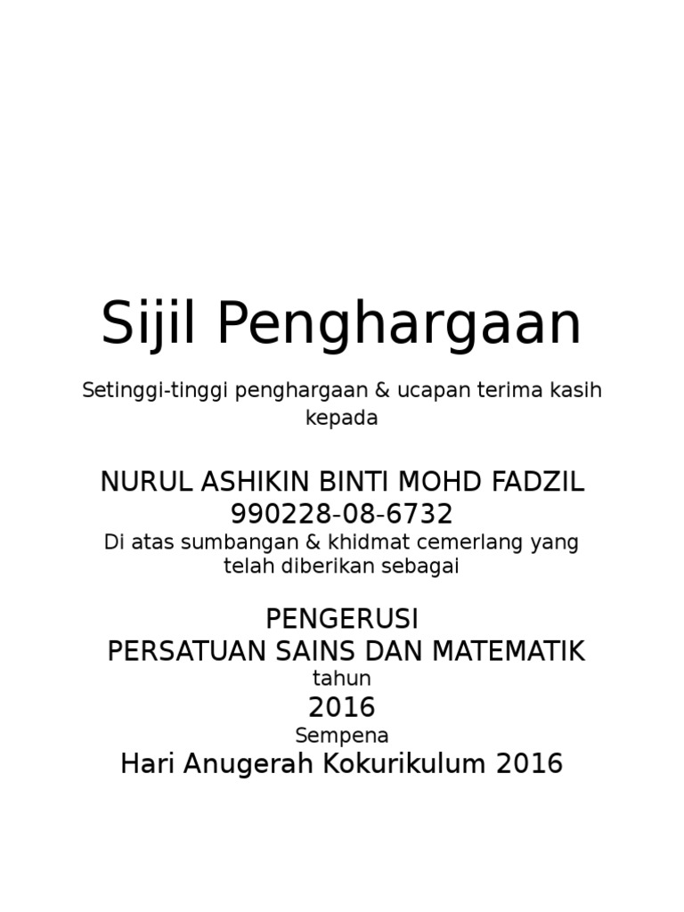 Contoh buat sijil penghargaan kelab kokurikulum sekolah tatacara membuat sijil di peringkat sekolah untuk program aktiviti kokurikulum. Logo jpn sabah digunakan bagi sekolah yang berada dalam sesuatu negeri tersebut. Ksbk terima sijil penghargaan daripada telekom pdrm di r panjang. Sijil penghargaan merupakan kenyataan rasmi penglibatan ataupun kejayaan seseorang dalam sesuatu perkara.