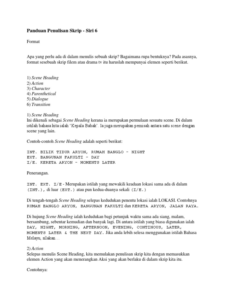 Contoh skrip naskah skenario. Didalam skrip drama ini pemain berjumlah 6 orang. Anda seorang yang bercita cita tinggi mahu menempah nama di dalam industri seni dan berhasrat untuk membina kerjaya belakang tabir. Berikut ini salah satu contoh naskah teks drama modern dengan tema komedi ringan.