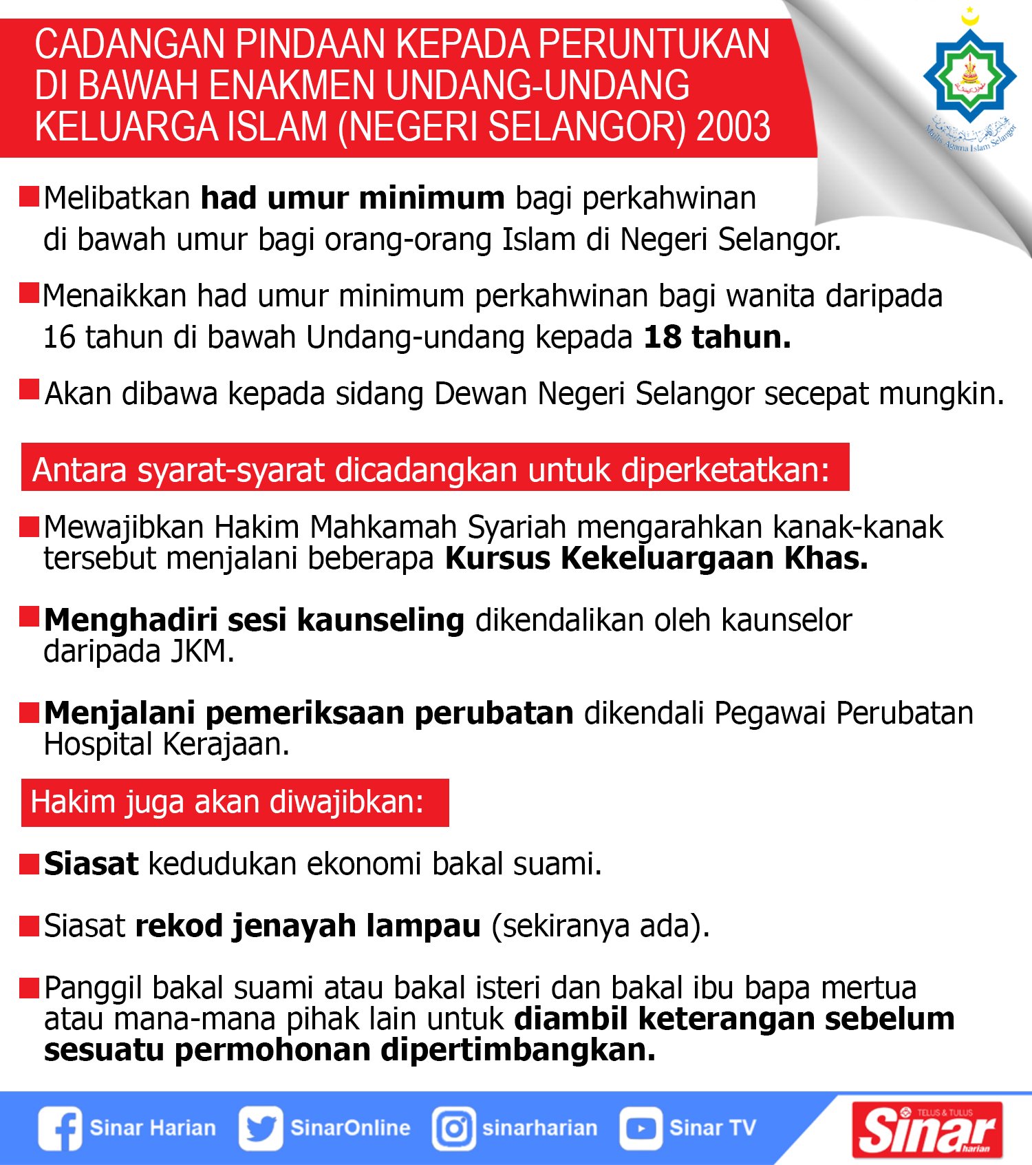 Enakmen undang undang keluarga islam selangor 2003. L enakmen ini bolehlah dinamakan enakmen undang undang keluarga islam negeri selangor pindaan 2018. Identiti di sisi undang undang dan fungsi majlis. Majlis hendaklah membantu dan menasihati duli yang maha mulia sultan. Pemohon tinggal sekurang kurangnya 4 bulan atau lebih di dalam kariah di mana permohonan ini dibuat.