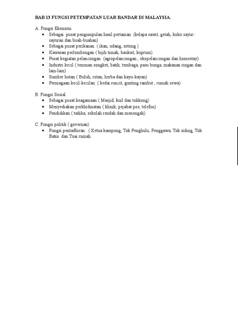 Fungsi petempatan luar bandar di malaysia. Fungsi petempatan luar bandar. Penghulu ketua kampung tok batin tuai rumah atau penggawa menjadi wakil kepada kerajaan. Penduduk dan petempatan di asia tenggara. Contoh petempatan luar bandar yang bertungsi sebagai pusat pengeluar hasil pertanian dan perikanan ialah dataran kedah perlis tanah.