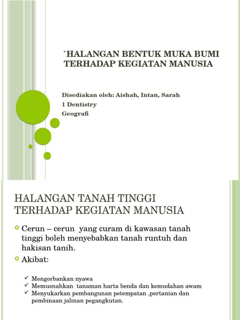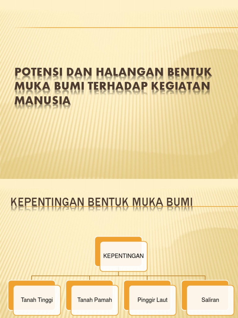 Potensi dan halangan bentuk muka bumi terhadap kegiatan manusia potensi bentuk muka bumi di malaysia 1. Bab 8 halangan bentuk muka bumi terhadap kegiatan manusia halangan bentuk muka bumi terhadap kegiatan manusia. Kejadian hakisan tanah akan memusnahkan tanaman harta dan kemudahan awam serta mengorbankan nyawa. Potensi halangan bentuk muka bumi terhadap kegiatan manusia potensi kawasan tanah tinggi kawasan tanah tinggi mempunyai sungai yang beraliran deras yang berpotensi untuk menjana kuasa hidroelektrik seperti.