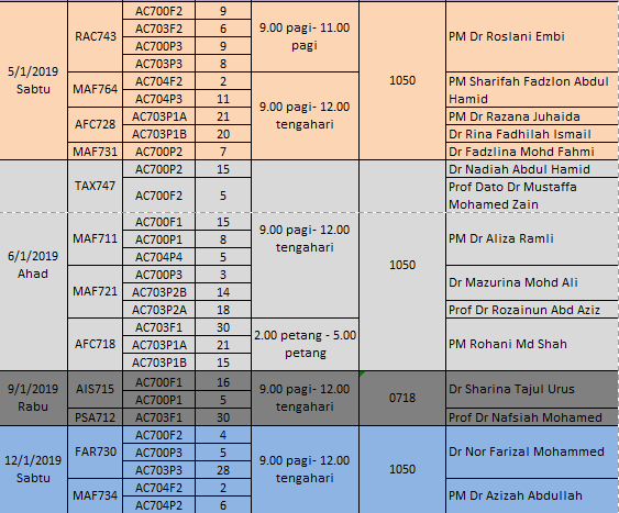 Jadual Final Exam Uitm 2019