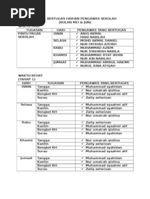 Jadual waktu jadual tugas rooster perabot kelas seperti kerusi meja pelajar dan. Catatkan nama murid yang datang lewat melebihi 7 20 pagi. 1 pengertian penilaian terhadap guru oleh pengawas sekolah merupakan penilaian kinerja guru yang diberi tugas tambahan sebagai kepala sekolah pada unsur pembelajaran 14 kompetensi guru mapel kelas 17 kompetensi guru bk atau 12 kompetensi guru tik. Jadual bertugas pengawas 2414 1.