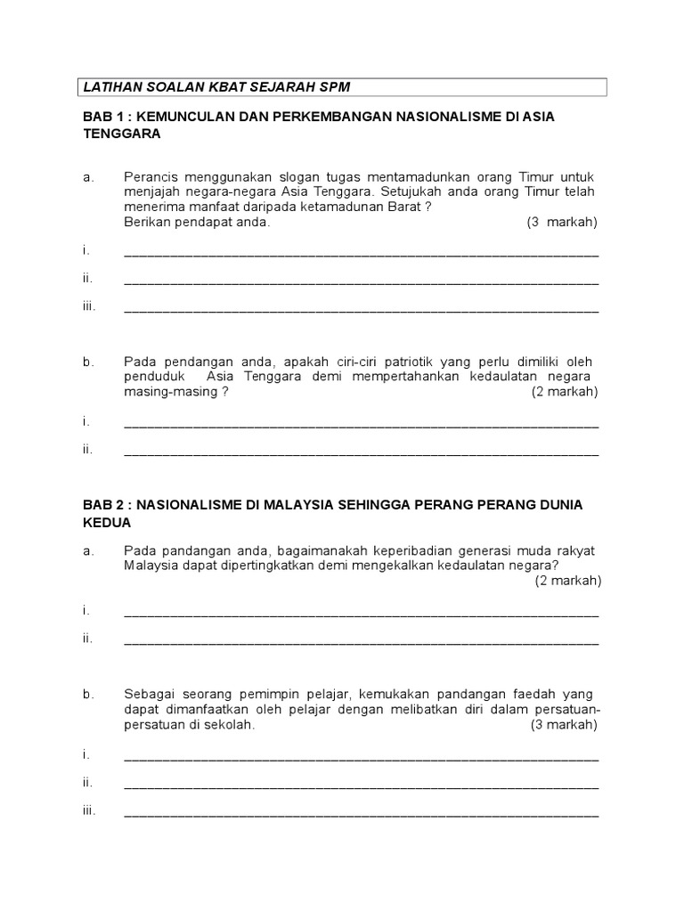 Kemunculan dan perkembangan nasionalisme di asia tenggara kertas 3 kbat. Huraikan perkembangan nasionalisme di filipina dan thailand 15m. Perkongsian soalan nota latihan skema jawapan bahan rujukan dan informasi terkini blog usaha padu dapat membantu para guru pelajar dan ibu bapa. Huraikan faktor faktor kemunculan nasionalisme di asia tenggara 30 m 1 dasar penjajah barat. Admin blog ini akan berusaha untuk.