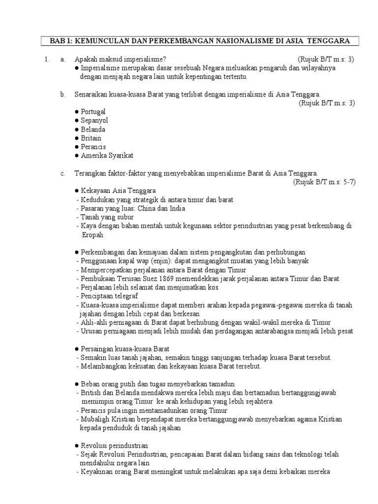 Huraian sukatan pelajaran dan buku teks sejarah ting 5 bab 1 soalan. Menganalisis tahap nasionalisme barat di asia tenggara. O menimbulkan perasaan tidak puas hati rakyat. Kemunculan dan perkembangan nasionalisme di asia tenggara sehingga perang dunia kedua.