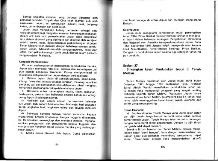 Kesan pendudukan jepun di tanah melayu dari segi politik dan ekonomi. Dasar jepun yang memonopoli ekonomi tanah melayu menyebabkan penderitaan kepada rakyat. Mitos keunggulan ketenteraan british di timur jauh dimusnahkan dalam tempoh 69 hari sewaktu singapura yang. Jepun tidak lagi menggalakkan perkembangan nasionalisme kerana ingin menjadikan tanah melayu sebagai tanah jajahannya parti politik seperti kesatuan melayu muda kmm terpaksa dibubarkan nasionalis melayu digalakkan menubuhkan kris atau kesatuan rakyat indonesia semenanjung atau kekuatan rakyat istimewa. Dari aspek ekonomi pula jepun turut memperkenalkan sistem ekonomi kawalan untuk menggantikan sistem ekonomi usahaniaga bebas abu talib ahmad 1991 se masa pendudukan jepun tanah melayu mengalami inflasi kerana pengedaran wang kertas secara tidak terkawal dan kekurangan barang pengguna terutamanya makanan.