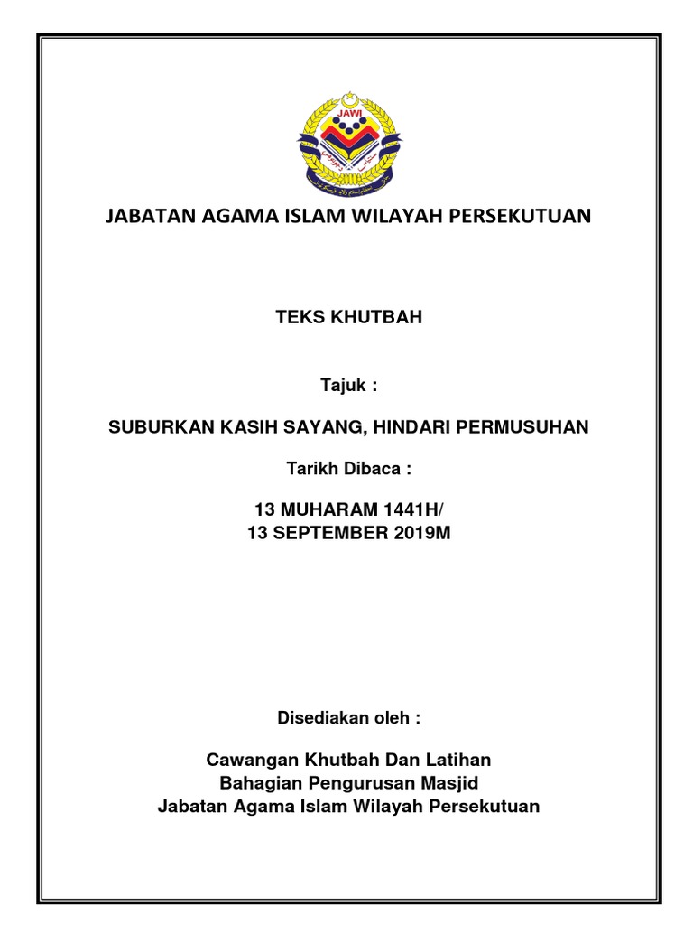 Khutbah jumaat wilayah persekutuan. 4 2 edaran ke seluruh masjid dan surau jumaat wilayah persekutuan 171 4 3 bacaan teks khutbah jumaat 173 4 4 tempoh masa proses penyediaan teks khutbah jumaat jawi 174 4 5 cabaran cabaran dalam proses penyediaan. Khutbah solat jumaat dipendekkan. Solat jumaat di wilayah persekutuan diteruskan. Jabatan agama islam wilayah persekutuan.