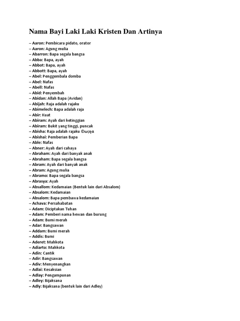 Laki laki nama anak lelaki kristian. Sekarang anda tidak perlu bingung lagi dalam memilih nama anak. Buat anda yang ingin menyempatkan nama kristen dan artinya untuk anak laki laki bisa disimak terlebih dahulu beberapa rekomendasian namanya dalam artikel yng telah kami buatkan khusus untuk bunda. Nama anak kristen lelaki berikut diambil dari berbagai bahasa modern seluruh dunia seperti bahasa inggris yunani jerman spanyol sansekerta dan lainnya dalam kata tunggal yang mengandung arti religius kristiani. Kami di theasianparent telahpun meringkaskan 100 nama bayi lelaki kristian terbaik dan maknanya untuk ibu bapa.