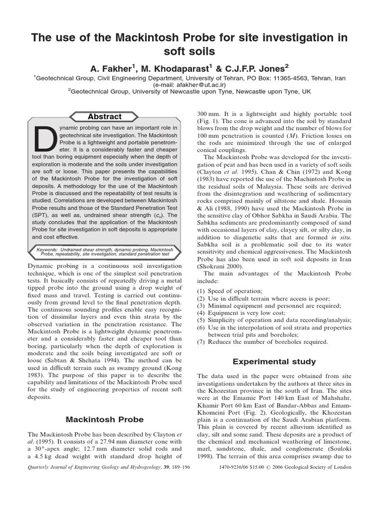 And simons n e 1995. Impact test equipment ltd. Jones2 1geotechnical group civil engineering department university of tehran po box. Mackintosh probe test is most widely used in situ test to measure the soil bearing capacity of different layers in terms of n value.