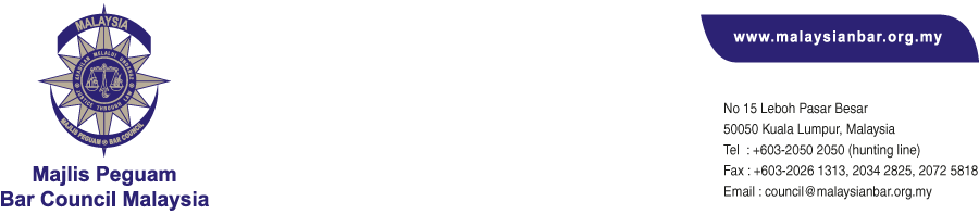 Majlis peguam bar council malaysia. Majlis peguam bar council malaysia bar council malaysia no. 13 15 17 leboh pasar besartel. Badan peguam malaysia is a professional body which regulates the profession of lawyers in peninsular malaysia in malaysia there is no distinction between a barrister and a solicitor in that it is a fused profession. Bangunan maybank is 147 meters away 3.