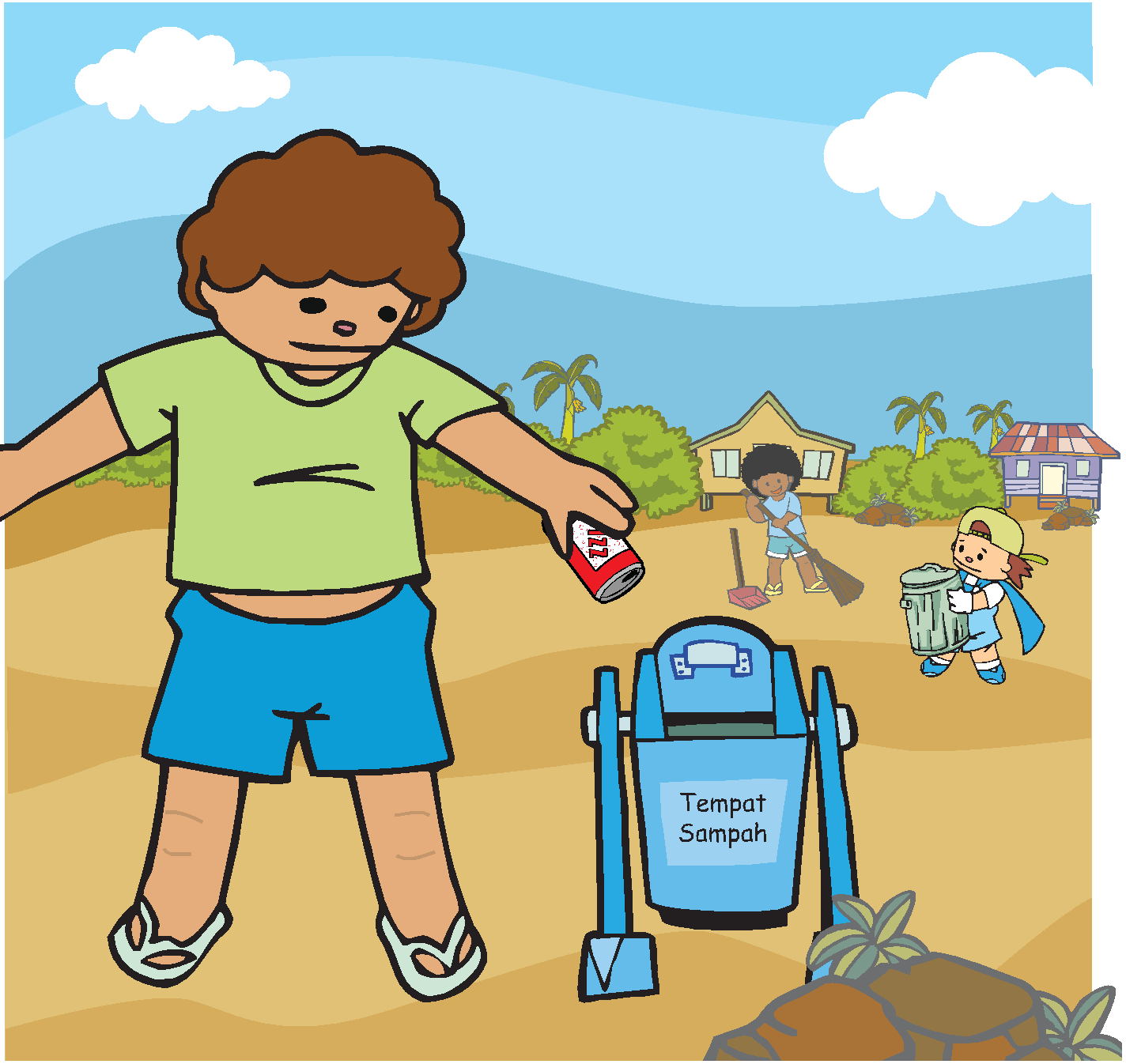 Menjaga Kebersihan Gambar Kartun Anak Buang Sampah Pada Tempatnya