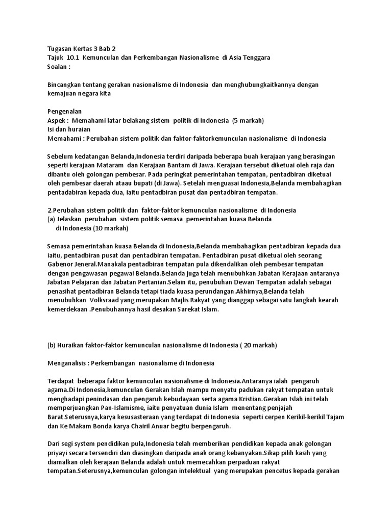 Huraikan faktor faktor kemunculan nasionalisme di asia tenggara 30 m 1 dasar penjajah barat. Untuk panduan pelajar dalam menjawab soalan kertas 3 sejarah spm berikut dikongsikan contoh soalan dan skema jawapan nasionalisme di asia tenggara. Kemunculan dan perkembangan nasionalisme di asia tenggara sehingga perang dunia kedua. 1 tingkatan 5 kandungan bab tajuk ms 1 nasionalisme di asia tenggara 2 nasionalisme di malaysia sehingga perang dunia kedua 3 kesedaran pembinaan negara dan bangsa 4 pembinaan negara dan bangsa 5 pembinaan negara dab bangsa yang merdeka 6.