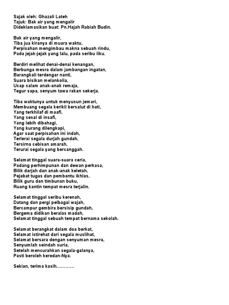 Mengucapkan selamat tinggal atau salam perpisahan itu tidak bererti apa apa. Gaya terbaru 37 ucapan perpisahan untuk rakan sekerja tebaru 2019. Pantun perpisahan teman sahabat buat kalian semua untuk kali ini admin mau posting dan membahas tentang kata perpisahan sedih akan sebuah persahabatan artikel ini membahas tentang perpisahan didalam persahabatan sedih tapi ini sudah menjadi kebutusan ingin pergi dan meninggalkan sahabatnya semoga bermanfaat bagi kalian yang ingin berkata kata tentang kesedihan pantun ataupun puisi seperti.