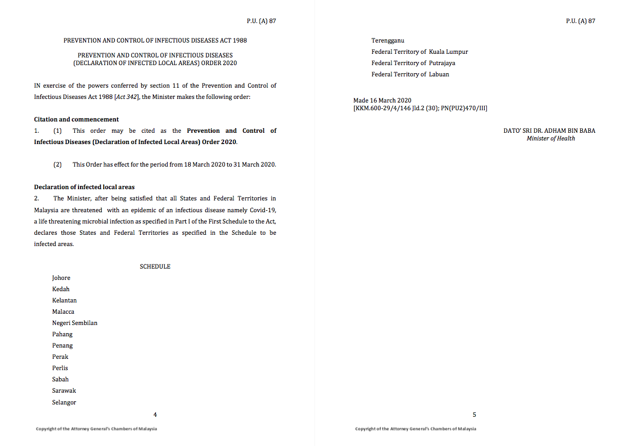 Prevention and control of infectious diseases act 1988 agc. B 179 1989 be it enacted by the seri paduka baginda yang di pertuan. Prevention of terrorism act 2015 act 769 723. An act relating to quarantine and the prevention of infectious diseases. Current version as at 02 nov 2020 authorising act.