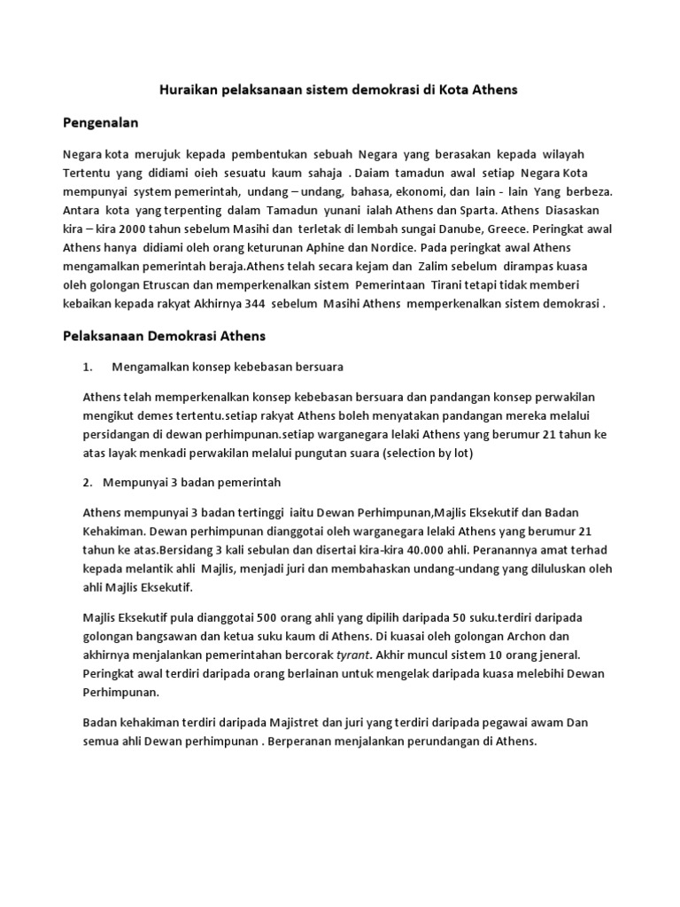 12 rumusan masalah apa pengertian dari demokrasi bagaimana konsep demokrasi from aa 1. Sistem demokrasi di athens soalan spm 2008 sistem demokrasi yang diamalkan di athens lebih kurang 3000 tahun dahulu telah diwarisi oleh hampir semua negara di dunia pada hari ini. Sistem demokrasi yang diamalkan di athens merupakan demokrasi langsung. Panjang rencana anda hendaklah tidak kurang daripada 150 patah perkataan tugasan anda hendaklah mengandungi aspek berikut.