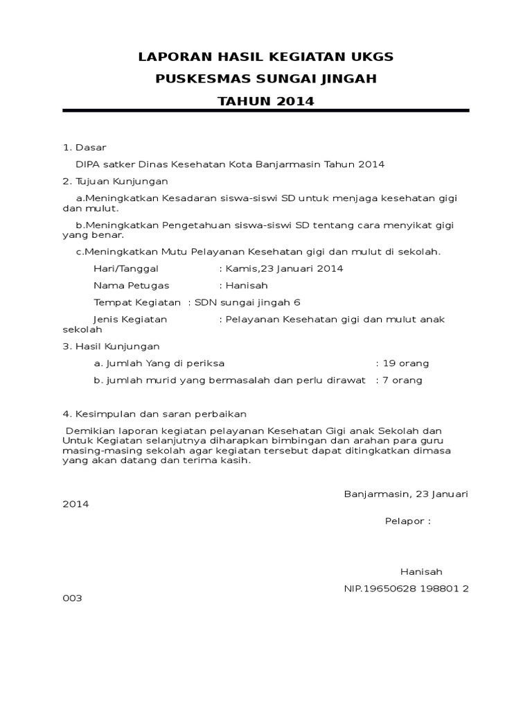 Sekolah contoh laporan hasil kegiatan. Contoh laporan kegiatan laporan kegiatan adalah sebuah laporan atas kegiatan tertentu yang telah dilakukan sebelumnya oleh individu maupun organisasi. Laporan kegiatan sekolah adalah laporan yang isinya seputar kegiatan apa saja yang dilakukan oleh sekolah. Berikut ini admin akan bagikan contoh laporan pelaksanakan kegiatan sekolah yang bisa anda download melalui link berikut ini. Contoh laporan singkat kegiatan jika kita bekerja pada sebuah institusi atau berorganisasi di sekolah setiap kegiatan yang diselenggarakan baik itu kegiatan pelatihan bakti sosial pramuka lomba 17 agustus dan acara acara lainnya pasti selalu dimintai pertanggungjawabannya entah itu berupa laporan tertulis ataupun dokumentasi berupa foto.