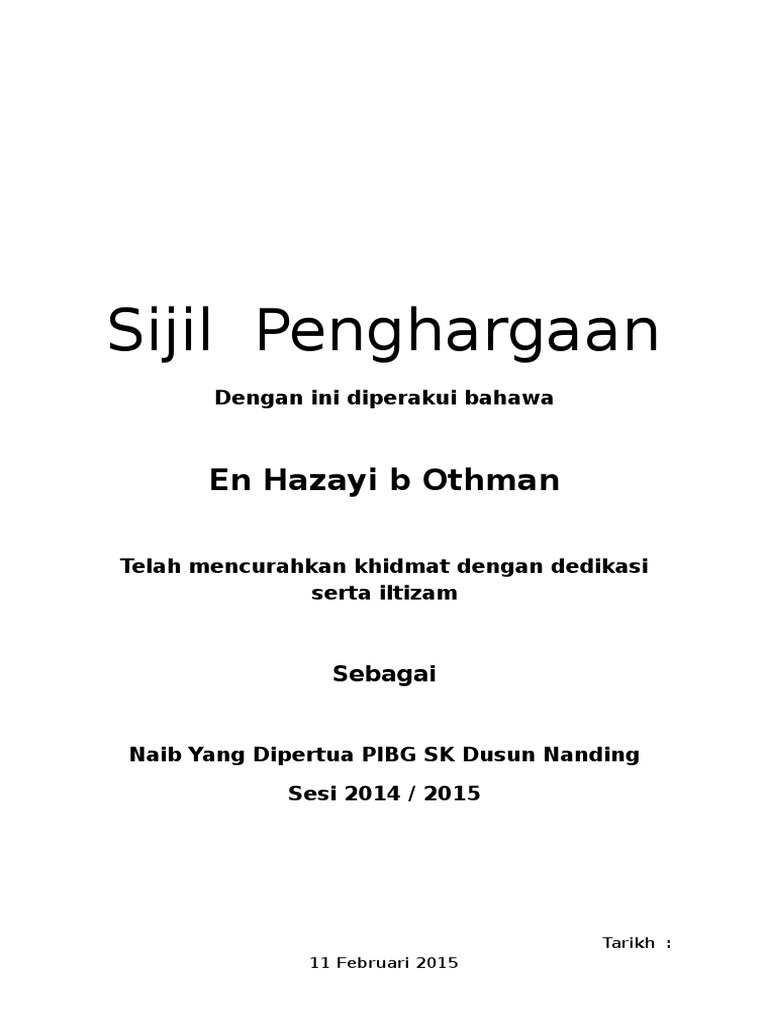 Sijil penghargaan pibg 2018. Download contoh sijil penghargaan. Contoh sijil penghargaan sekolah there is document contoh sijil penghargaan sekolah available here for reading and downloading. Biro sukan sosial dan.