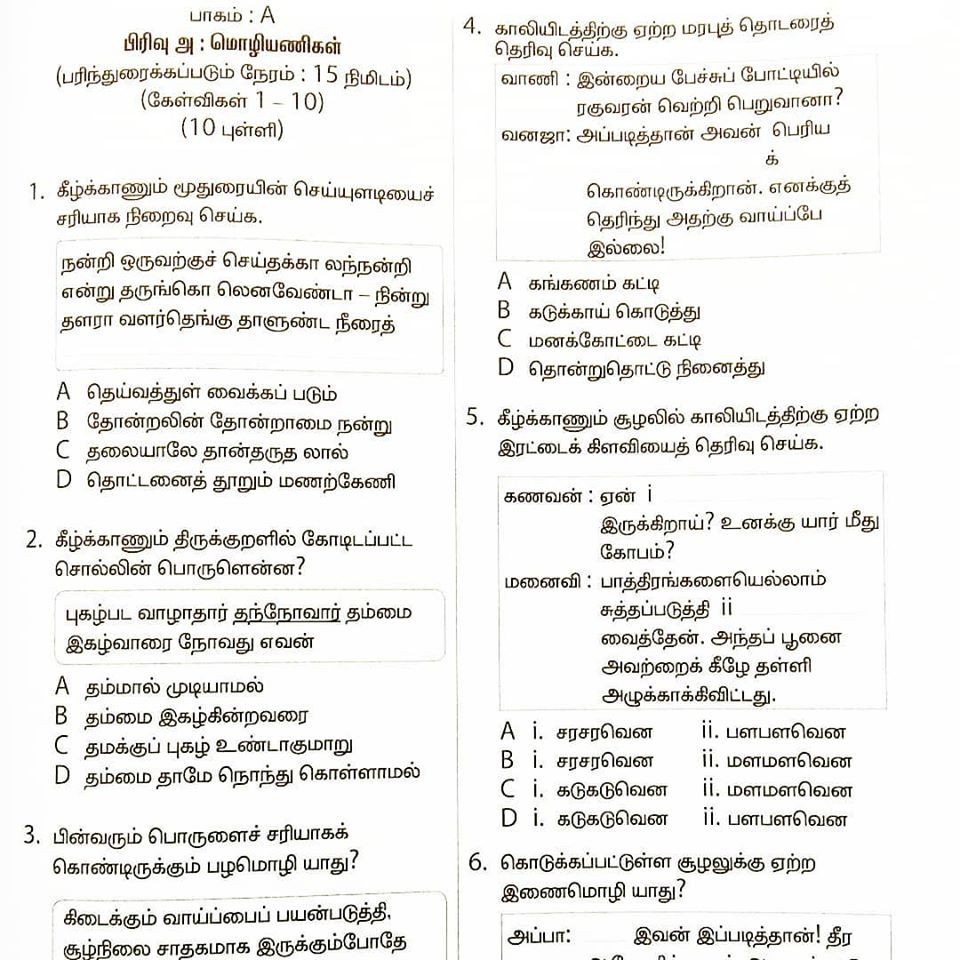 Koleksi soalan latihan ini disediakan bersama skema jawapan yang lengkap bagi memudahlan para pelajar atau guru membuat rujukan. Jangan lupa share kepada kawan2 ya pada group whasapp dan telegram. Soalan peperiksaan pertengahan tahun 4. Soalan latihan bahasa tamil ini adalah himpunan contoh soalan subjek bahasa tamil untuk rujukan dan latihan para pelajar dan guru.