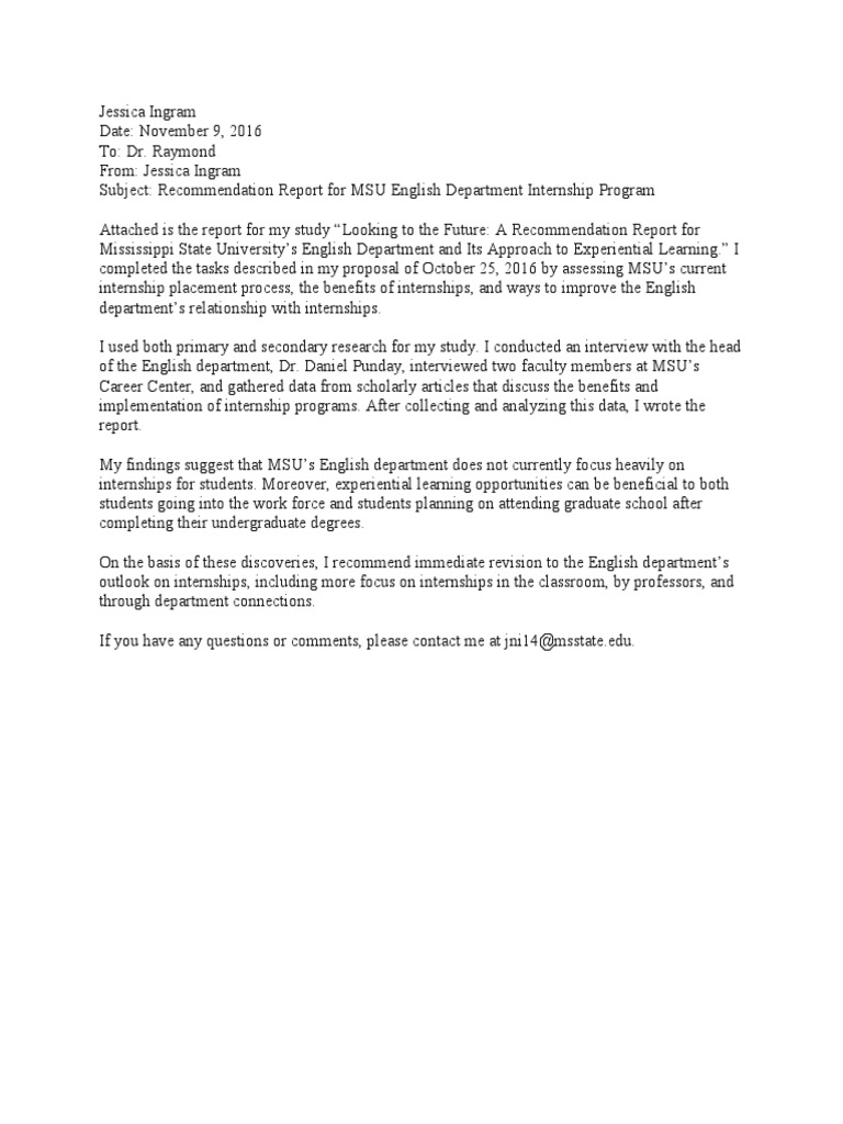 Suggestion and recommendation for internship. Conclusions suggestions and recommendations. Recommendation letters for internships. The recommendation letter for internship is a written character reference usually written by a past teacher or employer that is passed on to a company or organization to help the applicant get the internship position being offered the typical internship is usually easy to get as they are essentially jobs without payment. Even if it s not required some students opt to do an internship to gain on the job experience.