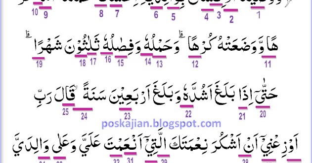 Surat al ahqaf ayat 15. Disertai juga dengan terjemahan bahasa malaysia oleh abdullah muhammad basmeih. Al qur an digital surat al ahqaf terjemahan bahasa indonesia. Now if two years of suckling are taken away from 30 months.