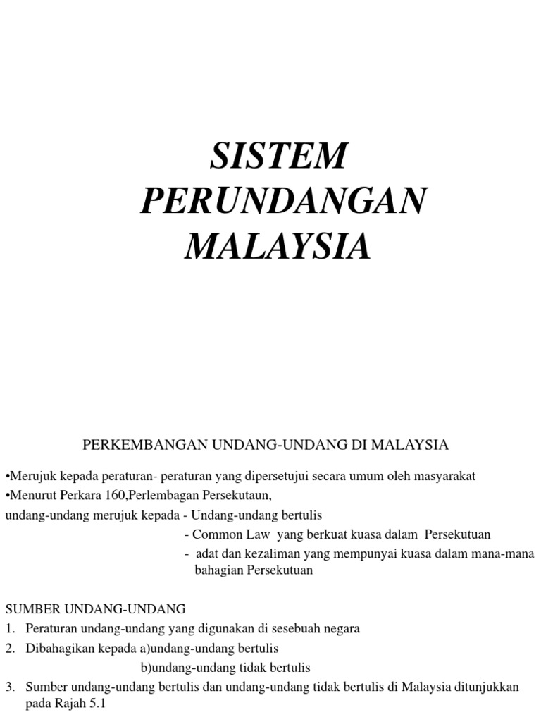Tidak seperti di uk undang undang bertulis ini adalah sumber undang undang yang utama di malaysia. Perlembagaan persekutuan negeri akta parlimen enakmen ordinan perundangan subsid. Scribd is the world s largest social reading and publishing site. Istilah ini boleh merujuk satu undang undang khusus atau kesemua undang undang yang telah digubal di mana styatut juga digunakan untuk merujuk kepada satu undang undang khusus.