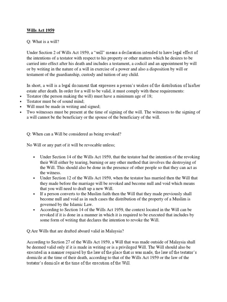 1 april 1960 l n. Short title and application 1 this act may be cited as the wills act 1959. The malaysia wills act 1959 will decide. 1 this act may be cited as the wills act 1959.